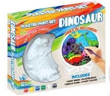 Zestaw kreatywny do malowania. Gipsowy obrazek z wytłoczonymi postaciami dinozaurów razem z farbkami, pędzlem i sztalugą. Mieszaj kolory farb, pomaluj dinozaury i ciesz się własnoręcznie ozdobionym obrazkiem w pokoju. Produkt zapakowany w kartonowe opakowanie z przezroczystym okienkiem. Podane wymiary są wymiarami opakowania.