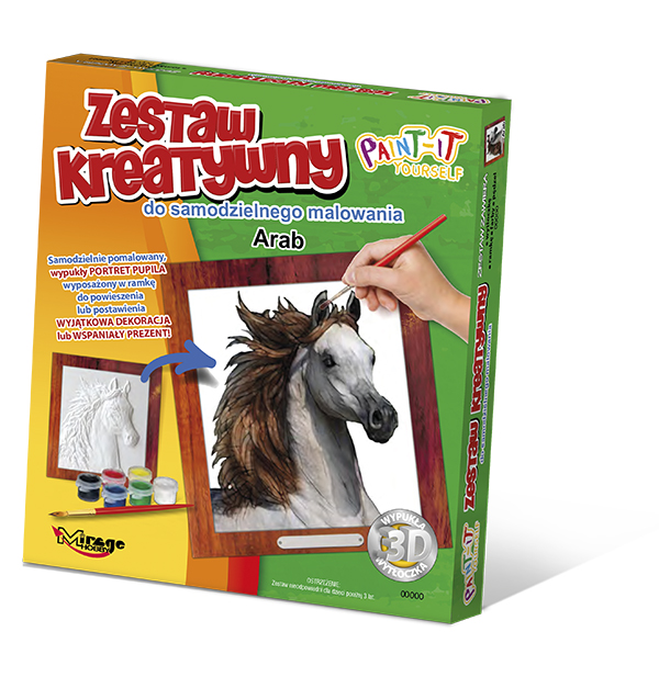 Obrazek pupila w Zestawach Kreatywnych Mirage Hobby, to wypukła wytłoczka 3D. Ponieważ jest ona wykonana z plastiku, możliwe jest umycie obrazka ciepłą wodą z mydłem i powtórne jego pomalowanie. Dzięki temu można poprawiać i dopracowywać swoje dzieło do uzyskania pożądanego efektu.