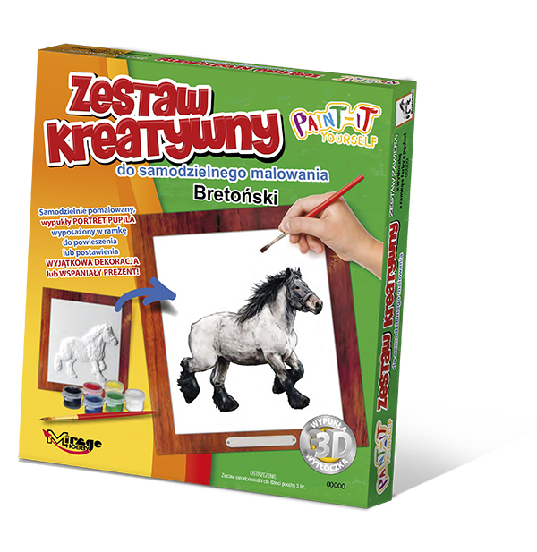 Obrazek pupila w Zestawach Kreatywnych Mirage Hobby, to wypukła wytłoczka 3D. Ponieważ jest ona wykonana z plastiku, możliwe jest umycie obrazka ciepłą wodą z mydłem i powtórne jego pomalowanie. Dzięki temu można poprawiać i dopracowywać swoje dzieło do uzyskania pożądanego efektu.