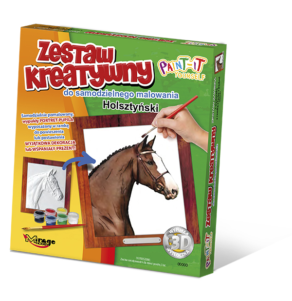 Obrazek pupila w Zestawach Kreatywnych Mirage Hobby, to wypukła wytłoczka 3D. Ponieważ jest ona wykonana z plastiku, możliwe jest umycie obrazka ciepłą wodą z mydłem i powtórne jego pomalowanie. Dzięki temu można poprawiać i dopracowywać swoje dzieło do uzyskania pożądanego efektu.
