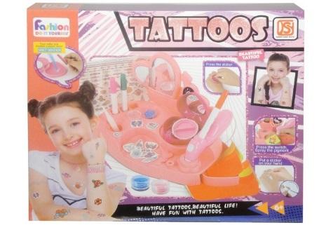 Zestaw dla dziewczynki do tworzenia tatuaży. Stwórz unikatową stylizację. W zestawie znajdują się m.in. naklejki, pisaki, brokaty, przyrząd do rozpylania. Produkt działa na baterie typu AA. Baterie nie są załączone do zabawki. Produkt zapakowany w kartonowe opakowanie. Podane wymiary są wymiarami opakowania. Produkt przeznaczony da dzieci od 6 lat.