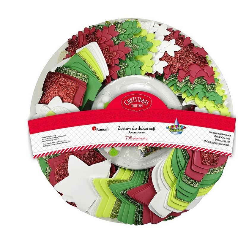 Zestaw 752 elementów, do wykonania dekoracji - wianków, girland, zawieszek: piankowe kształty, pompony poliestrowe, cekiny, kryształki samoprzylepne.