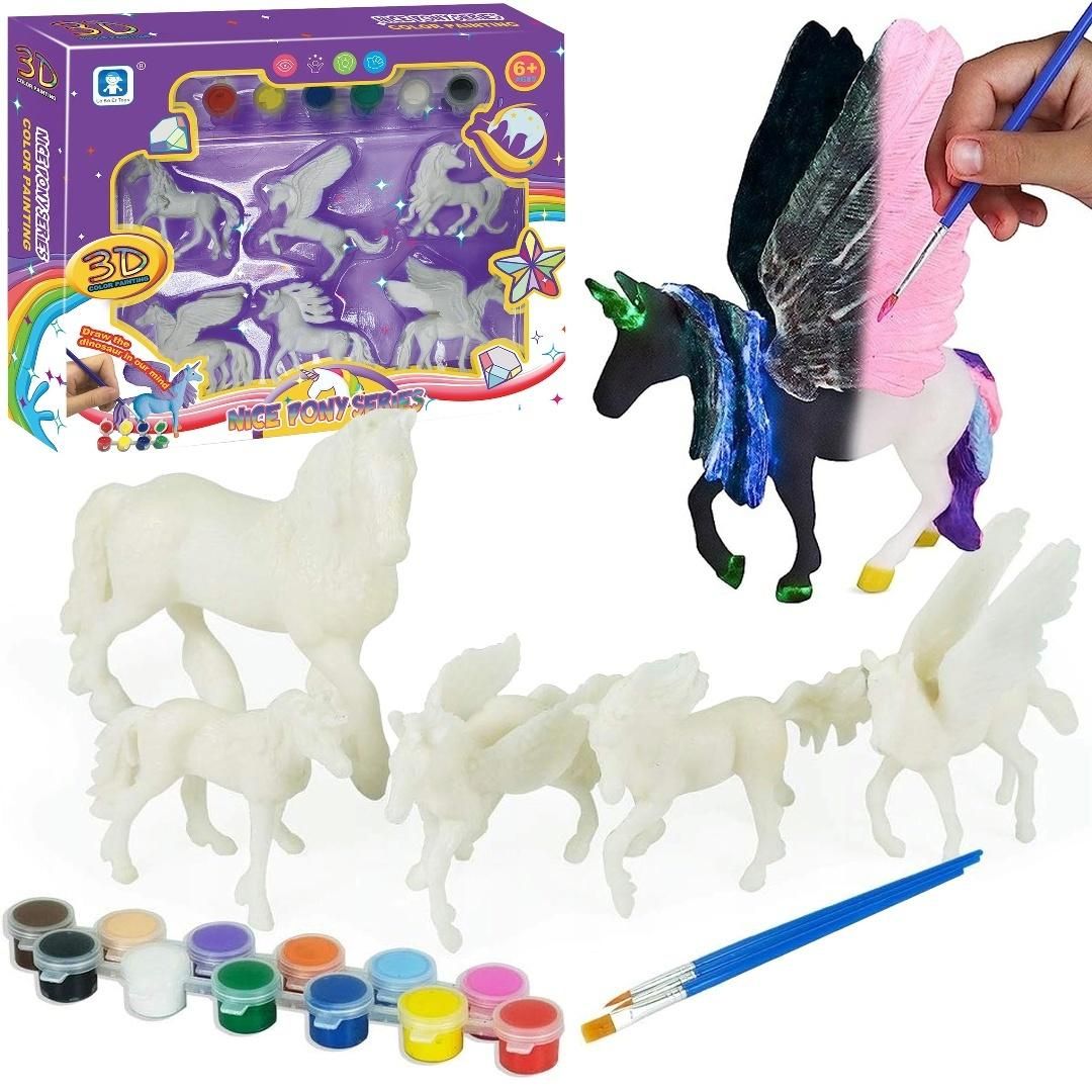 Zestaw do Malowania Figurek Kucyków i Jednorożców 3D - Kreatywna Zabawa dla Dzieci! Przedstawiamy fantastyczny zestaw do malowania figurek, który pozwoli każdemu dziecku stworzyć własne, unikalne figurki kucyków i jednorożców! To idealna zabawka dla małych artystów i fanów magicznych stworzeń, która rozwija kreatywność, zdolności manualne i wyobraźnię. Główne cechy produktu: Zestaw "Nice Pony Series": Kompletny zestaw do samodzielnego ozdabiania figurek. Zawiera różnorodne figurki 3D przedstawiające kucyki i jednorożce w różnych pozach - stojące, skaczące, z rozłożonymi skrzydłami. Figurki są w kolorze białym, gotowe do pomalowania. Bogata paleta farb: W zestawie znajduje się 6 pojemników z farbami w żywych kolorach (żółty, czerwony, niebieski, zielony, biały, czarny), które można mieszać, tworząc własne odcienie. To pozwala na pełną swobodę twórczą. Pędzelki w zestawie: Dołączone są dwa pędzelki o różnych rozmiarach, idealne do precyzyjnego malowania detali oraz większych powierzchni. Rozwija kreatywność i zdolności manualne: Malowanie figurek doskonali precyzję ruchów, koordynację ręka-oko oraz pobudza wyobraźnię, pozwalając na stworzenie niepowtarzalnych dzieł. Uczy rozpoznawania kolorów i mieszania barw: Dziecko w praktyczny sposób uczy się, jak kolory łączą się ze sobą. Idealny na prezent: Zestaw jest estetycznie zapakowany w kartonowe pudełko z atrakcyjną grafiką, co sprawia, że jest gotowym i inspirującym prezentem dla każdego małego artysty. Zalecany wiek: 6+ (zgodnie z oznaczeniem na opakowaniu). Wielkość 27x23x5cm Daj swojemu dziecku szansę na artystyczne wyrażenie siebie i stworzenie magicznych kucyków i jednorożców z tym wspaniałym zestawem do malowania!
