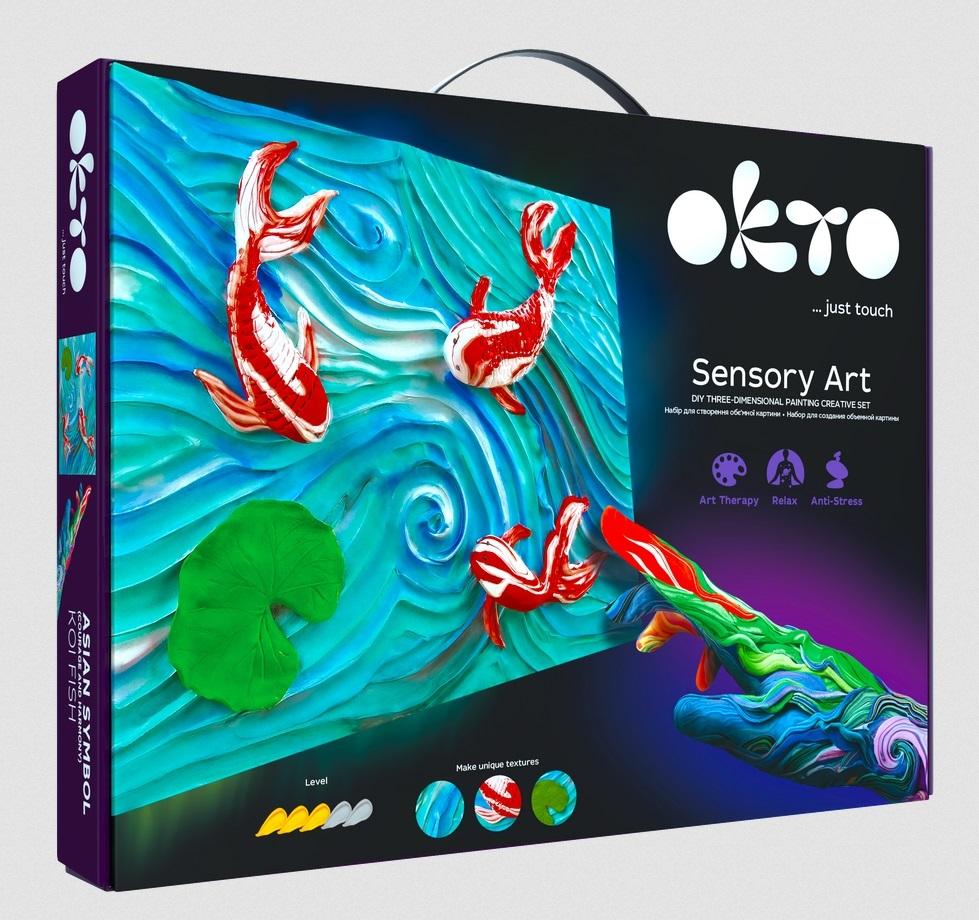 Stworzyliśmy wyjątkową recepturę masy, która nie klei się i nie pozostawia śladów na dłoniach, jest łatwa i miękka w aplikacji, a kolory, mieszając się, tworzą harmonijne przejścia. Ściśnij masę palcami, obserwuj jak mieszają się kolory. Posłuchaj zmiany doznań od miękkości i ciepła masy do chropowatości płótna.