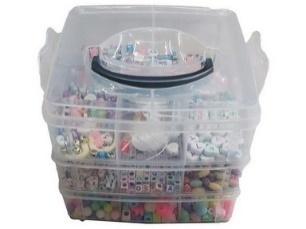 Zestaw kreatywny 2600 el., koraliki, kuferek "Kwadrat", 3 poziomy 15x15x13 cm