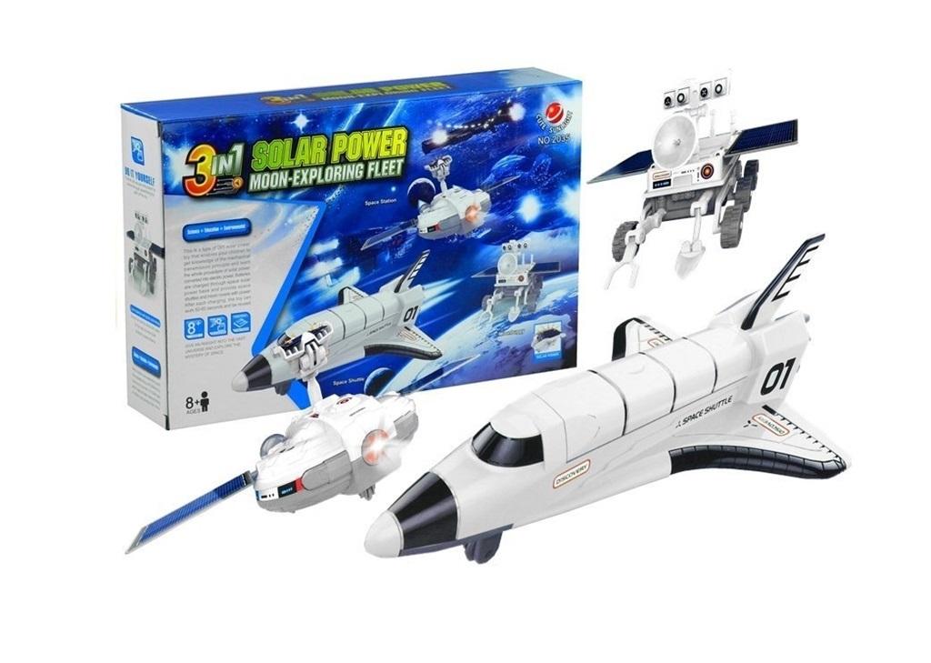 To, co może powstać z prezentowanego zestawu, to prom kosmiczny, stacja kosmiczna i łazik. Złożenie każdego z nich opisane jest w szczegółowy sposób w instrukcji obsługi znajdujące się tam obrazki znacznie ułatwiają cały proces. Do złożenia kosmicznych maszyn będziesz potrzebować 2 sztuk baterii AA 1,5V, nożyczek i obcążek, które nie są dołączone do zestawu. Próba konstruowania modeli jest fantastyczną rozrywką, będącą połączeniem przyjemności z nauką i rozwojem zdolności manualnych. Zestaw ten sprawdzi się zarówno w przypadku fanów modelarstwa, jak i głodnych wiedzy o galaktycznych przestworzach. Być może sprawi, że dziecko odkryje nowe hobby, co będzie dla niego bardzo rozwijającym i kreatywnym zadaniem.