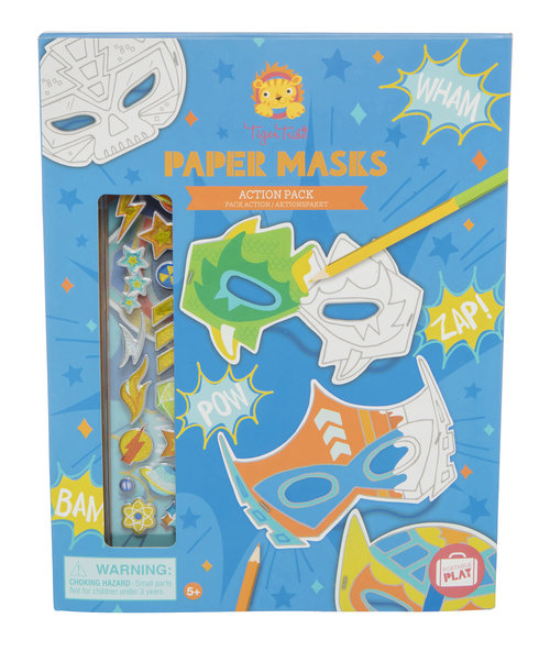 Zestaw fantastycznych masek dla dzieci zawiera 5 masek do pokolorowania i 5 kolorowych masek do ozdobienia, holograficzne naklejki, 3 dwustronne kredki oraz 10 gumek do mocowania masek na głowach. Maski Tiger Tribe można dowolnie personalizować. Będą wspaniałym uzupełnieniem stroju na bal karnawałowy czy 'przebieraną' dyskotekę. Ten zestaw polecamy szczególnie dla super-bohaterów! Tiger Tribe to marka pełna pomysłowych kreatywnych zestawów idealnych na podróż. Wszystkie pakowane są w solidne pudełka, które nie zajmują dużo miejsca i zwykle są zamykane na magnes. Ich zawartość np. notesiki są trwale przymocowane w środku opakowania, a naklejki, kredki itp. mają swoje miejsce w wewnętrznym pudełeczku. Wiek 5+