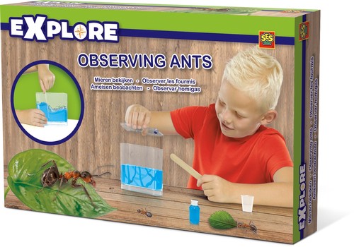 Czy zastanawiałeś się kiedyś, co dzieje się wewnątrz kolonii mrówek? Dzięki temu zestawowi SES Explore możesz to sprawdzić! Przygotuj specjalny żel do mycia z miksem energetycznym i wlej go do plastikowego zbiornika. Złap kilka mrówek w swoim ogrodzie i umieść je w swoim antquarium. Mrówki zaczną kopać, podobnie jak pod ziemią. Zobacz, jak mrówki jedzą, śpią, walczą i komunikują się. Mrówki nie potrzebują dodatkowych posiłków, ponieważ żel zawiera wszystkie potrzebne składniki odżywcze. Uwolnij mrówki po dwóch tygodniach. Dla dzieci w wieku od 8 lat