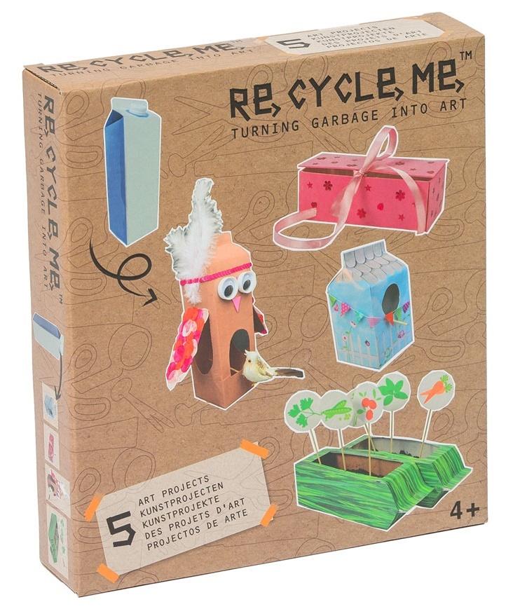 Zestaw Re-Cycle-Me to niezwykłe pudełko, które przyniesie dzieciom wiele zabawy, radość z tworzenia oraz pobudzi wyobraźnię, a jednocześnie pokaże jak łatwo możemy dbać o naszą planetę. Wewnątrz znajdują się materiały oraz instrukcja, które pozwolą stworzyć 5 zabawek:
