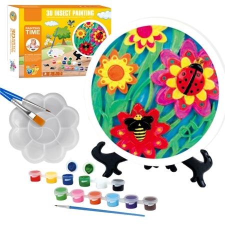 W zestawie znajduje się gipsowa podstawa z biedronką i kwiatami na sztaludze. Akcesoria dołączone do zestawu pozwolą stworzyć prawdziwe dzieło sztuki.