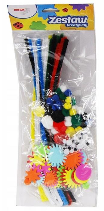 Zestaw kreatywny średni zawartość: pompony - 39 szt naklejki z pianki - 36 szt ruchome oczy - 20 szt druciki kreatywne - 20 szt