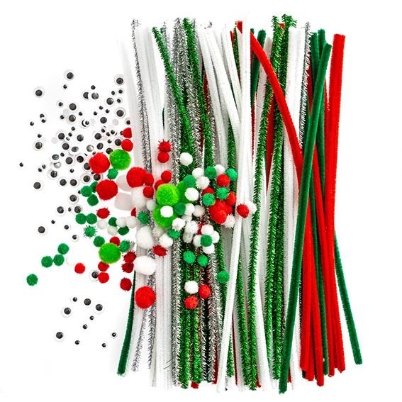 W skład zestawu wchodzą różnokolorowe druciki kreatywne w typowo świątecznych kolorach, miękkie pompony oraz ruchome oczka, które ożywią każdą kreatywną wizję.