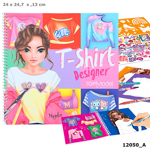 Zestaw kreatywny T-shirt TOPModel, 60 stron do kolorowania, 2 plansze naklejek, szablony, stwórz swoją pierwszą kolekcję mody!