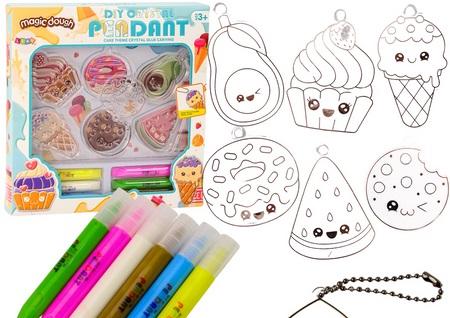 Zestaw Kreatywny Witraże Zawieszki DIY Babeczki Awokado Arbuz Malowanie zastygającymi farbkami to idealna forma spędzania wolnego czasu, która pozwala dzieciom wyrazić siebie i obudzić w sobie artystę. To aktywność, która może trwać wiele godzin, doskonale wpływając na rozwój kreatywności i wyobraźni. Witraże zawieszki do malowania z zastygającą farbą w kształcie słodyczy to wyjątkowy zestaw artystyczny, który oferuje dzieciom możliwość tworzenia kolorowych zawieszek, inspirując się motywem słodyczy. Proces tworzenia jest niezwykle prosty i przyjemny, co czyni go idealnym zajęciem zarówno dla młodszych, jak i starszych dzieci. Wybierając swój ulubiony kolor farby, dzieci mogą pomalować zawieszkę według własnego pomysłu, dodając do niej diamenty, aby nadać jej dodatkowego blasku. Po zakończeniu malowania wystarczy pozostawić zawieszkę do wyschnięcia, a farbka zastygnie, tworząc efektowny wzór. Dzięki tej metodzie każde dziecko może stworzyć unikalne i piękne ozdoby, które będą odzwierciedlać jego indywidualny styl i kreatywność. Jednym z największych atutów tego zestawu jest możliwość łatwego korygowania błędów. Jeśli efekt końcowy nie spełni oczekiwań, farbę można łatwo usunąć, zdrapując ją z powierzchni zawieszki. Farbka odchodzi bez problemu, co pozwala na ponowne malowanie i eksperymentowanie z różnymi kolorami i wzorami. To nie tylko eliminuje frustrację związaną z nieudanym projektem, ale także zachęca dzieci do dalszego eksplorowania swoich artystycznych możliwości. Pisaki żelowe używane do malowania są bezpieczne i wygodne w użyciu. Nie brudzą i łatwo schodzą z rąk. Tworzenie witraży zawieszek z zastygającą farbą to nie tylko świetna zabawa, ale także wartościowe narzędzie edukacyjne. Proces ten rozwija zdolności manualne, koordynację ręka-oko, a także umiejętność planowania i realizacji projektów artystycznych. Dzieci uczą się podejmować decyzje dotyczące doboru kolorów i wzorów, co wzmaga ich pewność siebie i zdolności twórcze. Zestaw zawiera: -6x witraży -6x zawieszek - 6x pisaków -4x kolory diamencików -pęseta Wymiary opakowania: 27,5cm x 26,5cm x 4cm Posiada certyfikat CE, ponadto jest zgodny z normą EN71. Przeznaczony dla dzieci powyżej 3 roku życia.