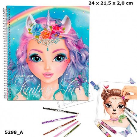 Zaprojektuj fantastyczną twarz. Dzięki pomocnym instrukcjom i szablonom krok po kroku możesz fantastycznie malować Top Model. Zanurz się w fantastycznym świecie TopModel. W zestawie są również świetne naklejki.