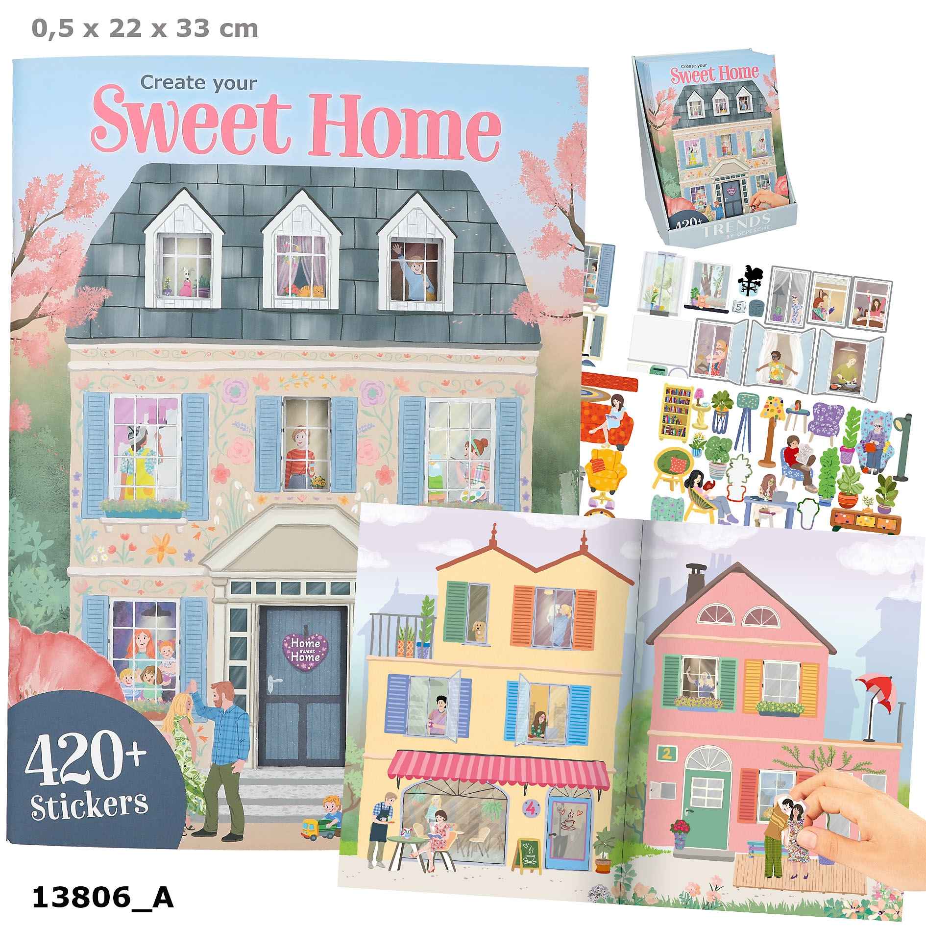 Zestaw Create Your Sweet Home, z naklejkami, 24 strony z planszami do wyklejania + 4 strony z naklejkami