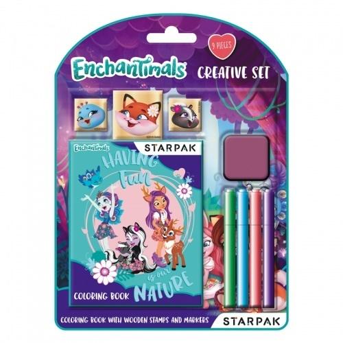 Zestaw kreatywny do kolorowania z kolekcji Starpak z licencją Enchantimals. Zestaw składa się z kolorowanki w formie 8-kartkowej książeczki z ulubionymi bohaterami oraz 4 kolorowych pisaków i 3 drewnianych stempelków wraz z poduszeczką z tuszem do ozdabiania. Świetny pomysł na prezent, który rozwija umiejętności plastyczne dziecka. Zapoznaj się również z innymi produktami Starpak z licencją Enchantimals! 22x16,5x2.