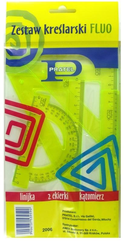 Opakowanie Zestaw kreślarski fluoresc. z linijką 16cm PRATEL