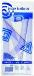 Zestaw kreślarski duży: 2 standardowe przezroczyste ekierki 25 cm 45/60 stopni, kątomierz 10 cm/180 stopni, linijka 30 cm. Elementy zestawu posiadają trwałą nieścieralną podziałkę, elemnty mają zaokrąglone rogi dla bezpieczeństwa użytkownika. Wykonany precyzyjny nadruk skali ( do 0.001 cm), różne kolory nadruków, wyprodukowana zgodnie z normami europejskimi.