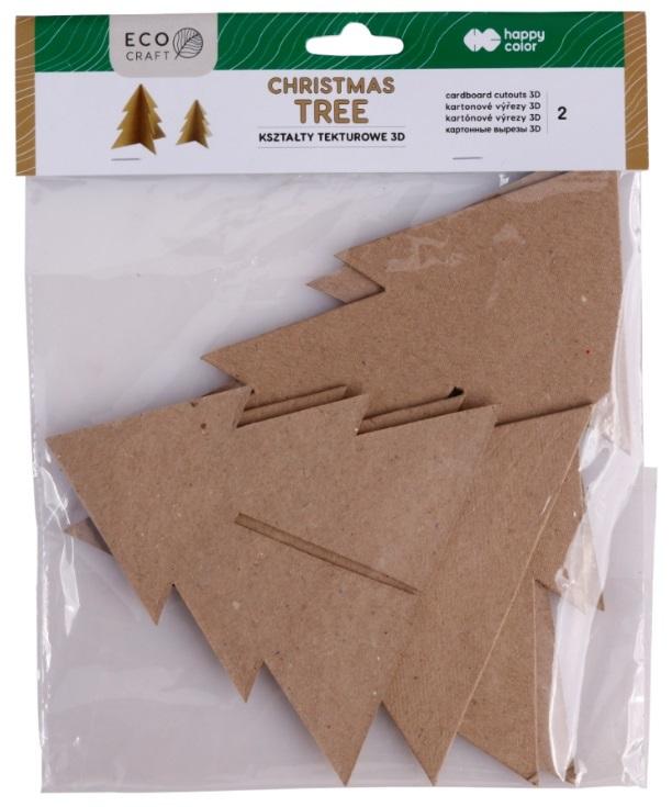 Zestaw kształtów tekturowych do złożenia stojących choinek. Do tworzenia oryginalnych świątecznych dekoracji domu, stołu oraz jako prezent dla najbliższych. 2 kształty w opak. o wysokości 13 cm i 18 cm.