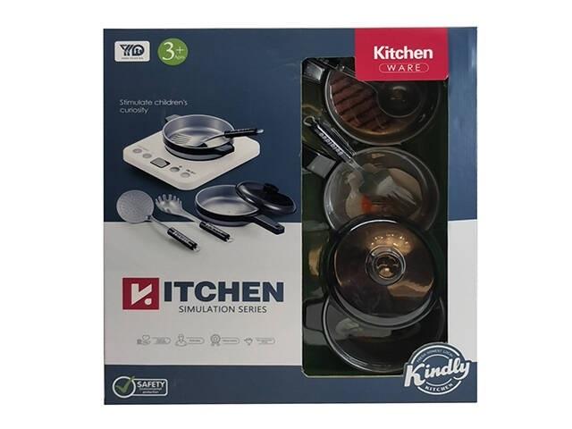 Zestaw kuchenny, który zawiera: 2 garnki, 2 patelnie, gazówkę, zestaw sztućców. Produkt nie potrzebuje baterii. Zabawka przeznaczona dla dzieci powyżej 3 roku życia.
