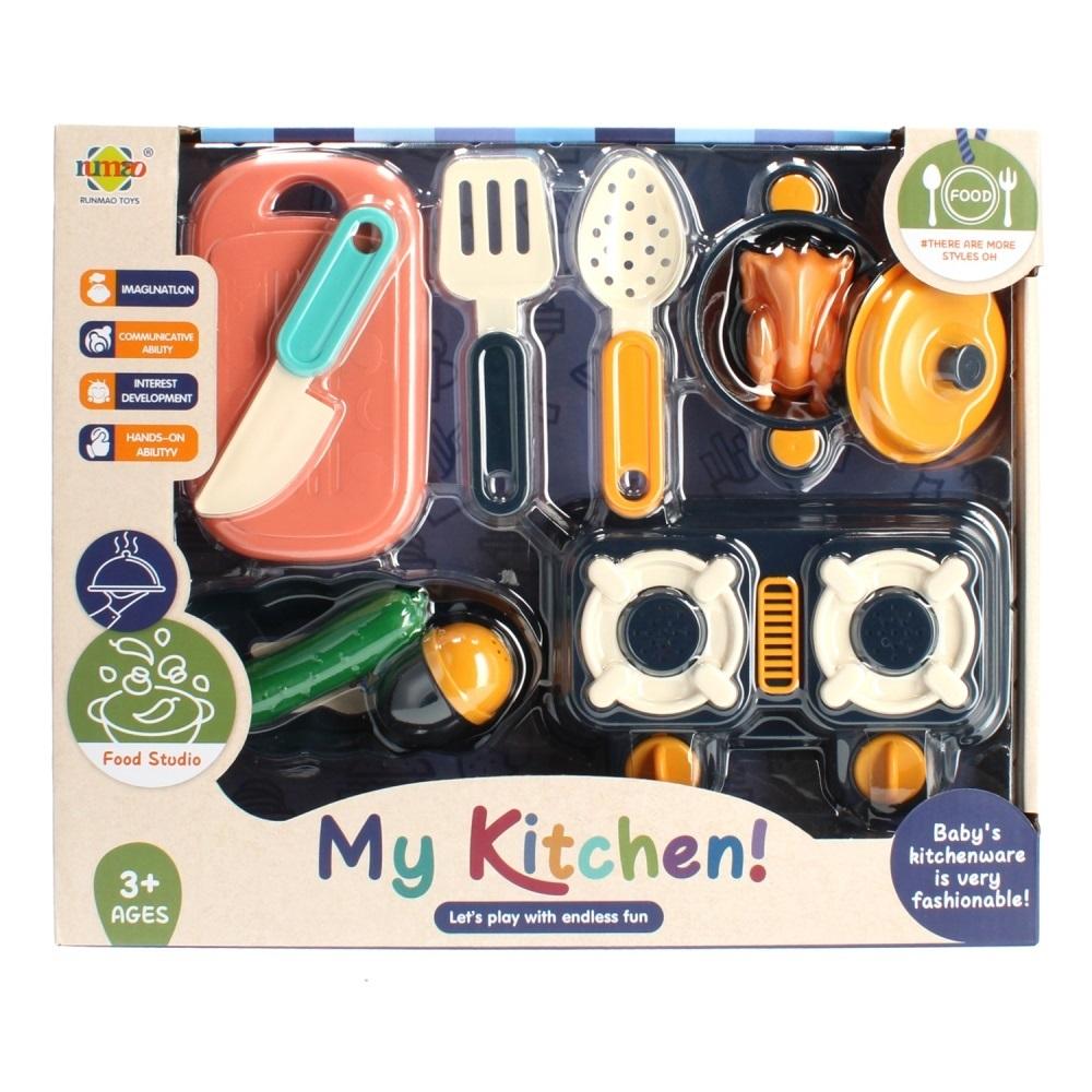 Zalety produktu: rozwija zdolności poznawcze, kreatywność dziecka. Twoje dziecko najlepiej uczy się poprzez zabawę. Zachęcając je do niej, przyczyniasz się do rozwoju jego kreatywności, zmysłów i zdolności poznawczych. Zestaw kuchenny MEGA CREATIVE będzie doskonałym uzupełnieniem każdej dziecięcej kuchni! Zawartość zestawu: kuchenka z dwoma palnikami, garnek z pokrywką, imitacja kurczaka pieczonego, deska do krojenia, tacka, imitacja ogórka, przyprawnik, nóż, podbierak oraz łopatka do obracania mięsa. Całość wykonana z plastiku. Wymiary/waga/baterie: wymiary produktu (dł. x wys. x gł.)[cm]: kuchenka-17x4,5x12, deska do krojenia- 15x2x9, wymiar opakowania (dł. x wys. x gł.) [cm]: 37x31x7, waga produktu bez opakowania [kg]: 0,20 kg, waga produktu w opakowaniu [kg]: 0,43 kg, nie wymaga zasilania bateriami. Produkt przeznaczony dla dzieci w wieku: 3+. Pakowany w kartonik z okienkiem.
