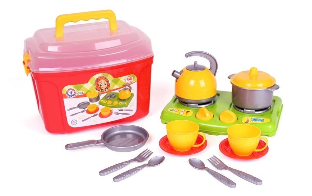 Naczynia składają się w jasnej walizce z przezroczystą pokrywką i wygodnym uchwytem. Jednocześnie walizka jest zabawkową kuchenką gazową. Dziecko będzie mogło ugotować na nim pyszne dania dla zabawkowych przyjaciół i poczęstować ich herbatą. Zestaw naczyń jest jak prawdziwy, więc jest interesujący dla dzieci. Takie gry rozwijają wyobraźnię dzieci, zdolności motoryczne i uczą porządku.