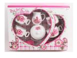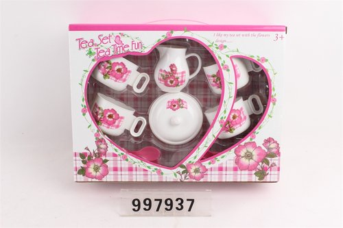 Zestaw kuchenny który zawiera wiele akcesoriów takich jak, dzbanek, filiżanki, łyżeczki i inne.