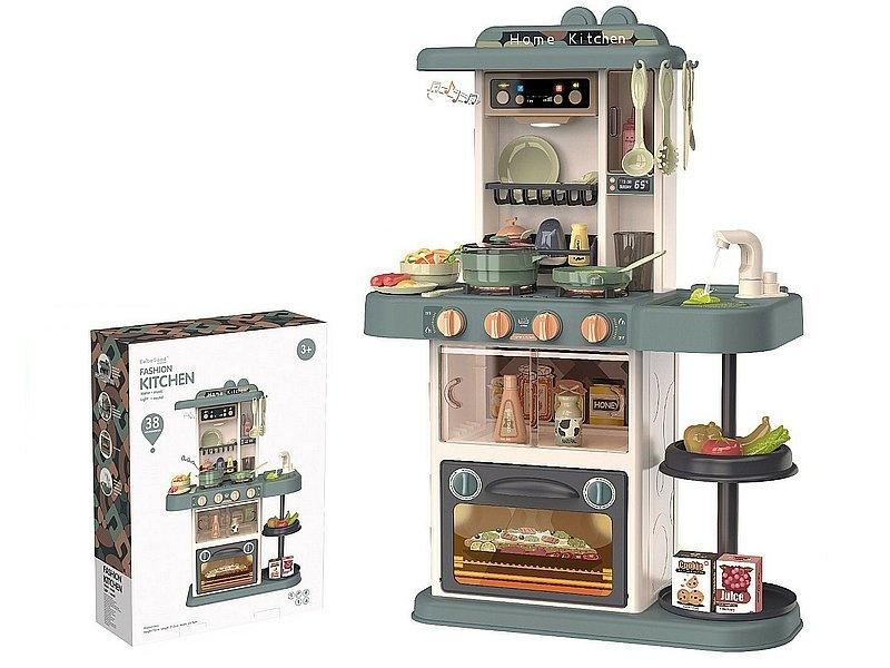 zestaw kuchnia wys.72cm z wyposażeniem, 38 części, światło, dźwięk, funkcja wody w kranie; 59,5x16x44cm