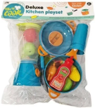 Zestaw kuchenny z garnkami, blenderem, kubkami, warzywami i owocami i akcesoriami. Zabawka przeznaczona dla dzieci od lat 3. Produkt zapakowany w przezroczysty worek.