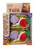 Zestaw dwóch tacos z plastiku z dodatkami: warzywa, mięso i sos. Zapakowane w kartonowe pudełko. Zabawka przeznaczona dla dzieci od lat 3. Podane wymiary stanowią wymiar opakowania.