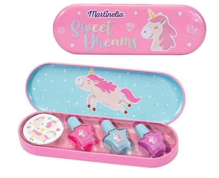 Zestaw lakierów dla dzieci w metalowym etui zwiera: 3 lakiery, naklejki.