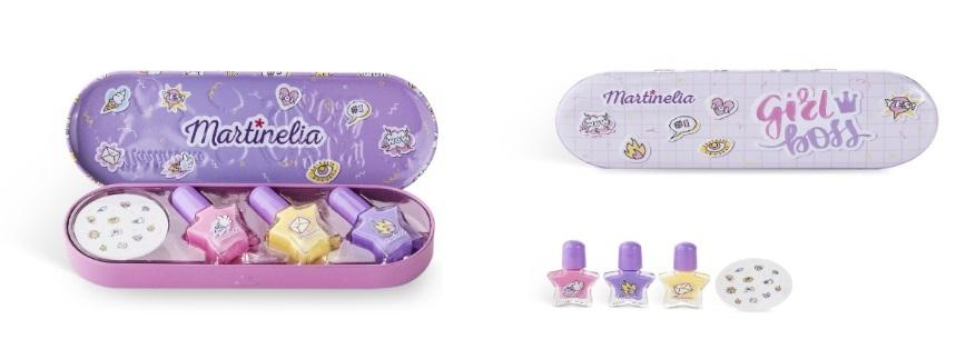 Zestaw lakierów dla dzieci w metalowym etui zawiera: 3 lakiery, naklejki.