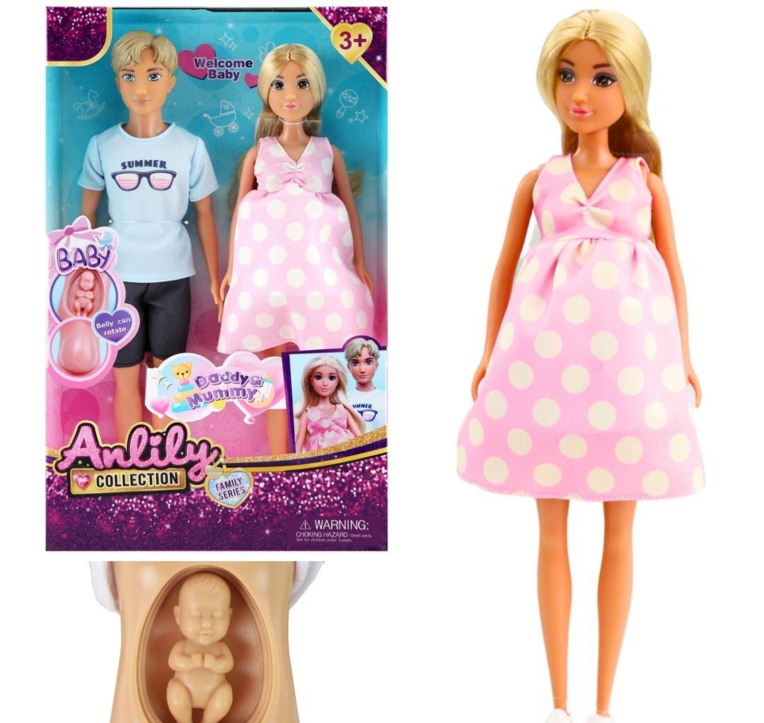 Rodzina AnLili "Family Series" - Lalka Mama z Brzuszkiem, Tata i Bobas w Zestawie! Przedstawiamy uroczy zestaw lalek AnLili z serii "Family Series", który w piękny sposób odzwierciedla radość z powiększania rodziny! To idealna zabawka edukacyjna dla dzieci, która pozwala na poznanie procesu narodzin i rozwijanie empatii, opiekuńczości oraz zrozumienia ról rodzicielskich. Główne cechy produktu: Lalka Mama z obrotowym brzuszkiem: Lalka ma długie, blond włosy i ubrana jest w uroczą, różową sukienkę w białe kropki. Jej specjalny, obrotowy brzuszek ("Belly can rotate") pozwala na umieszczenie w nim figurki bobaska. Dziecko może "wyjmować" i "wkładać" dziecko, naśladując proces narodzin, co jest zarówno edukacyjne, jak i fascynujące. Figurka bobaska: W zestawie znajduje się mała figurka bobaska, którą można umieścić w brzuszku lalki Mamy. Lalka Tata: Do zestawu dołączony jest lalka Tata z blond włosami, ubrana w jasnoniebieski T-shirt z napisem "SUMMER" i krótkie spodenki. Razem tworzą pełną rodzinę. "Welcome Baby" - powitanie bobasa: Na opakowaniu widnieje hasło "Welcome Baby", co podkreśla główny motyw zestawu i celebruje narodziny. Rozwija empatię i odpowiedzialność: Zabawa tym zestawem uczy dzieci o cyklu życia, rolach rodzicielskich, wzajemnej opiece i odpowiedzialności związanej z posiadaniem dziecka. Pobudza wyobraźnię: Dzieci mogą odgrywać różnorodne scenki rodzinne, tworzyć własne historie o życiu rodzinnym, co stymuluje kreatywność i rozwój emocjonalny. Estetyczne opakowanie: Lalki są zapakowane w eleganckie, przezroczyste pudełko z atrakcyjną grafiką, które prezentuje ich wygląd i funkcje, co czyni je doskonałym prezentem. Bezpieczne dla dzieci: Produkt wykonany jest z bezpiecznych materiałów. Zalecany wiek: 3+ (zgodnie z oznaczeniem na opakowaniu). Wielkość opakowania: 32x20x6 cm Podaruj dziecku zestaw Rodziny AnLili i pozwól mu na twórczą, edukacyjną i pełną miłości zabawę, która rozwija zrozumienie i czułość wobec rodziny.