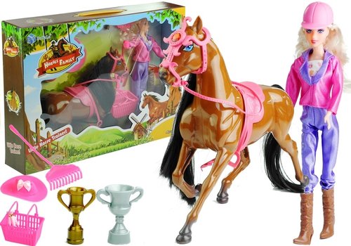 Zestaw Lalka i Koń w Stajni + Akcesoria Brązowy