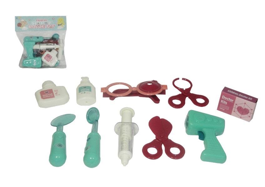 Zestaw lekarski dla dzieci. W zestawie znajduje się m.in.: termometr, lusterko, strzykawka, nożyce, leki. Produkt zapakowany w przezroczysty worek Zabawka przeznaczona dla dzieci od 3 lat. Podane wymiary stanowią wymiar opakowania.