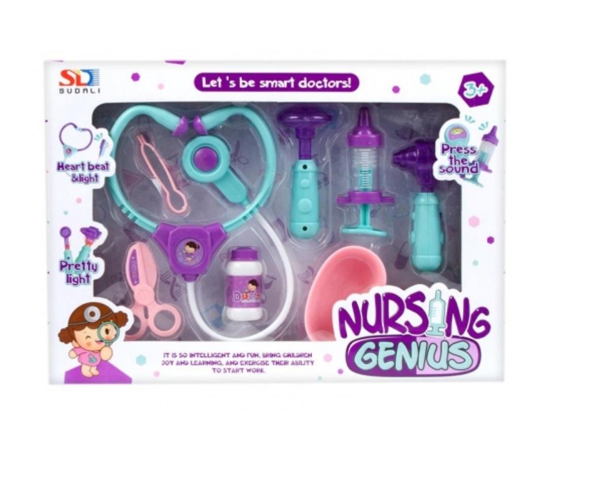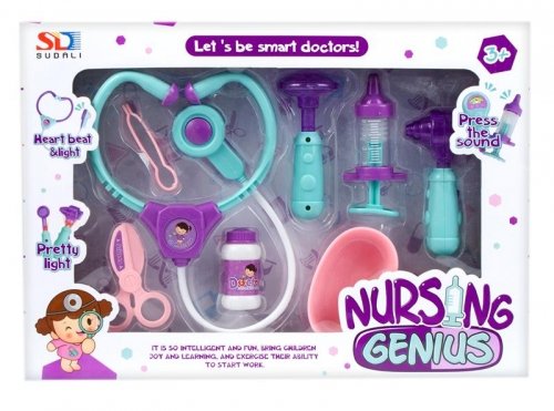 Dzieci marzą aby w przyszłości zostać lekarzem. Pozwól więc mu już teraz przygotować się do wymarzonego zawodu! W zestawie znajdują się: stetoskop, peseta, nożyczki, buteleczka na leki, otoskop, strzykawka, naczynie na narzędzia lekarskie. Zabawka posiada efekty świetlne oraz dźwiękowe. Zestaw wymaga zasilania bateriami 3 X AG10- załączono do zestawu oraz 2 x AG13- załączono do zestawu. Produkt przeznaczony dla dzieci w wieku: 3+. Wymiary opakowania (dł. x wys. x gł.) [cm]: 42x30x6.