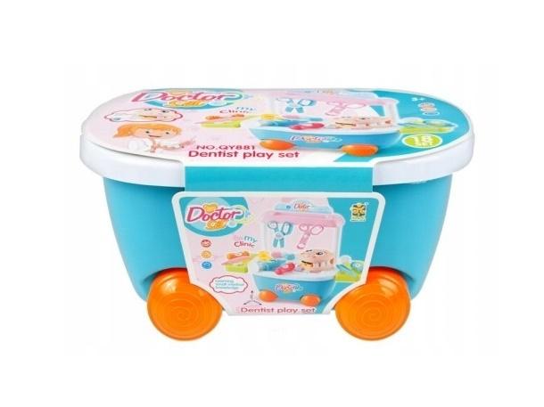 Zestaw lekarski dla małego dentysty, w praktycznym wózku na kółkach.