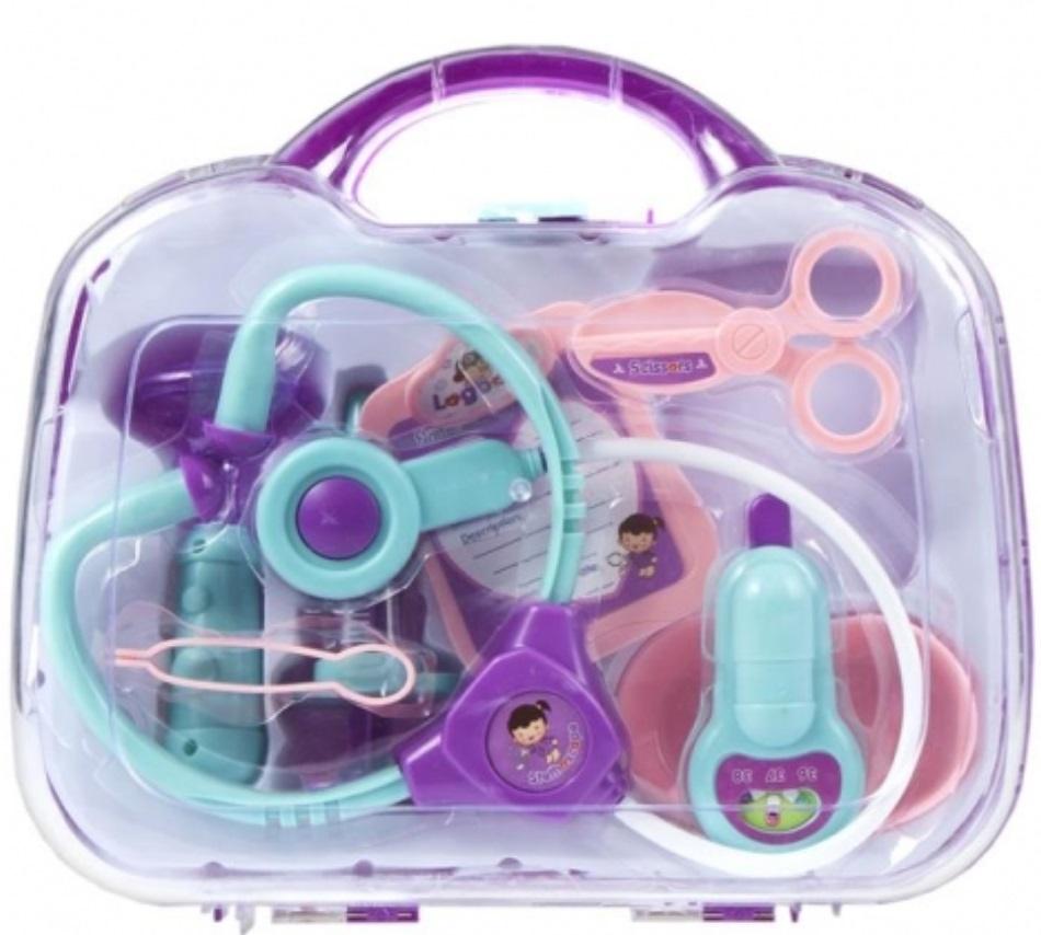 Zestaw lekarski MEGA CREATIVE w walizce to świetny pomysł na wspaniałą zabawę w lekarza. Pozwól swojemu dziecku przenieść się w świat dorosłego życia i pozwolić wykonywać mu zawód o którym zawsze marzyło! Ten podręczny zestaw w zamykanej walizeczce z rączką pomieści wszystkie niezbędne akcesoria lekarskie. Zestaw zawiera: stetoskop, nożyczki, strzykawkę, termometr, otoskop, pesetę oraz wiele innych akcesoriów potrzebnych do wykonania rutynowych badań. Zestaw zawiera 9 elementów. Produkt wykonany z plastiku. Przeznaczony dla dzieci do 3 lat. Wymiary opakowania (dł. x wys. x gł.) [cm]: 28x23x9.