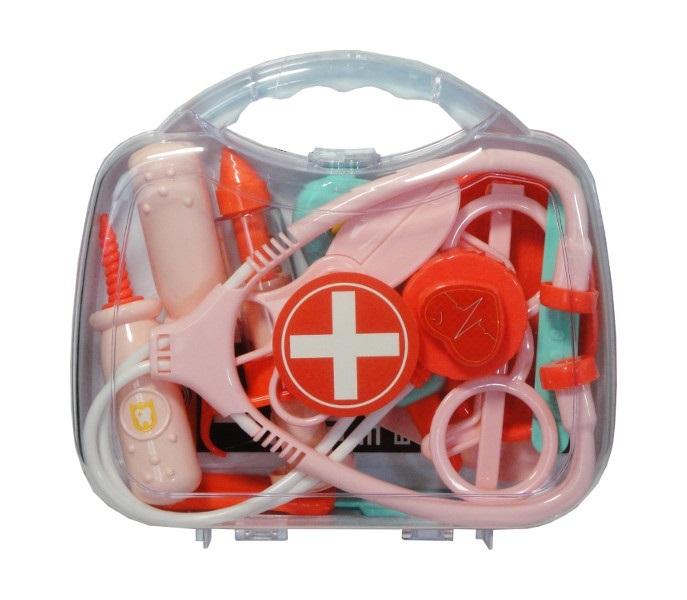 Zestaw lekarski dla dzieci do zabawy. W zestawie m.in.: stetoskop, nożyce, okulary, pęseta, strzykawka. Zestaw pozwoli zaznajomić dzieci z podstawowymi przyrządami lekarskimi. Wszystkie elementy zestawu są razem zapakowane w plastikową walizkę. Podane wymiary są wymiarami walizki. Zabawka dla dzieci od 3 lat.