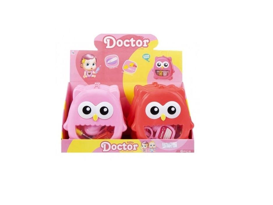 Wieloelemntowy zestaw lekarski dla najmłodszych w uroczej walizce w kształcie sowy.