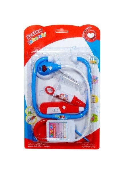Zabawka z odgłosami bicia serca oraz polskojęzyczną konwersacją lekarz-pacjent. Stetoskop świeci, wydaje odgłosy bicia serca oraz odtwarza polskojęzyczną konwersację pacjent-lekarz. Za pomocą wypowiedzi dziecka oraz lekarza przedstawiona jest pełna wizyta w gabinecie lekarskim, zaczynając od badania i diagnozy, a kończąc na zaleceniach. W zestawie m.in. słuchawki lekarskie, termometr, strzykawka, młoteczek, nożyczki, lusterko czołowe. Wybrane elementy działają na baterie typu AG10. Baterie znajdują się w zabawce.