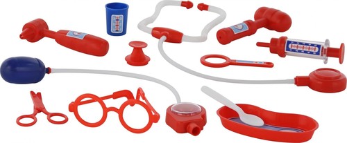 Zestaw plastikowych akcesoriów do zabawy w lekarza - 11 elementów. Dla dzieci w wieku od 3 lat.