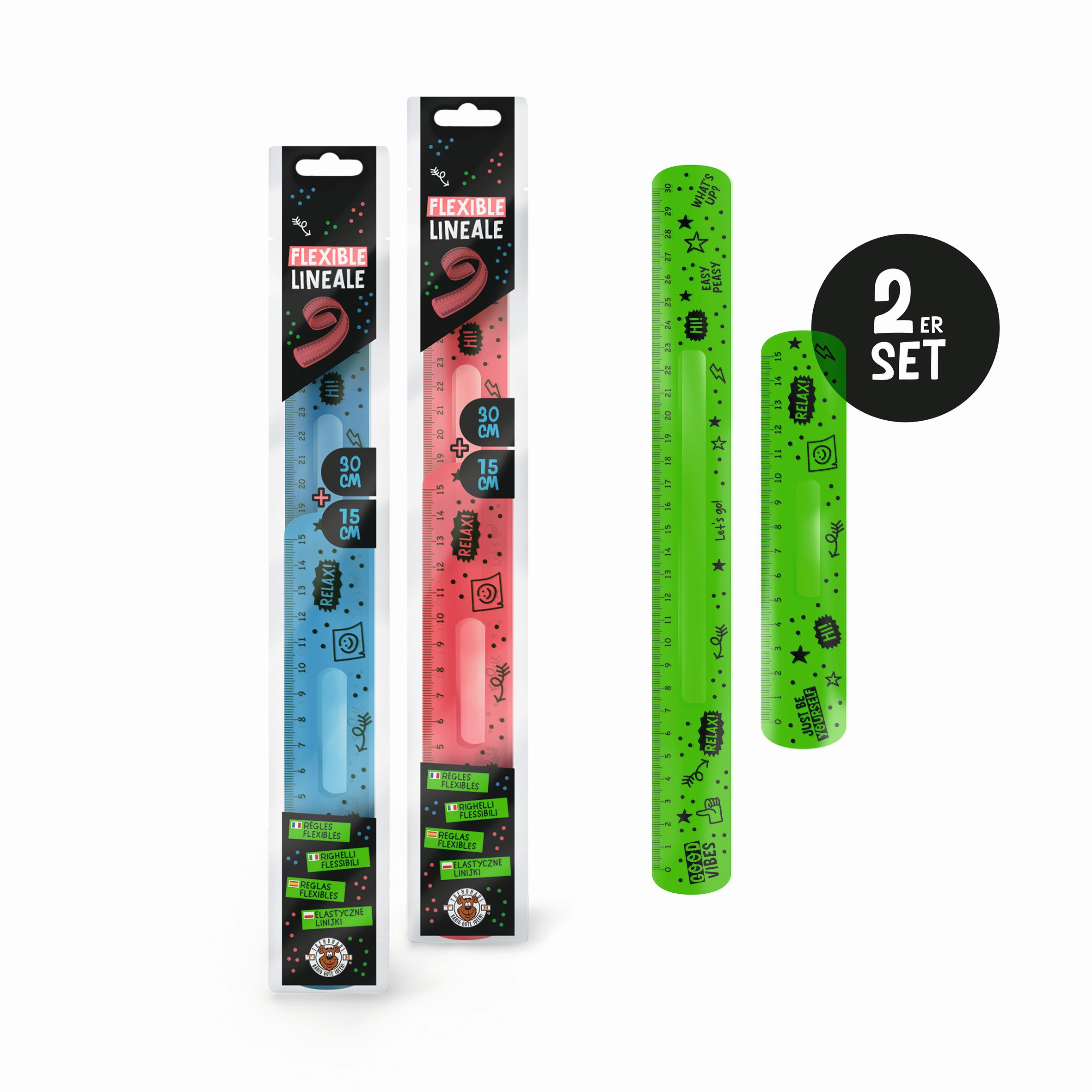 Te dwie przezroczyste, wyginane linijki w neonowych kolorach i z zaokrąglonymi rogami nie powinny zabraknąć w żadnej szkolnej torbie. Zawartość zestawu: 2 linijki o długości 15 cm i 30 cm.