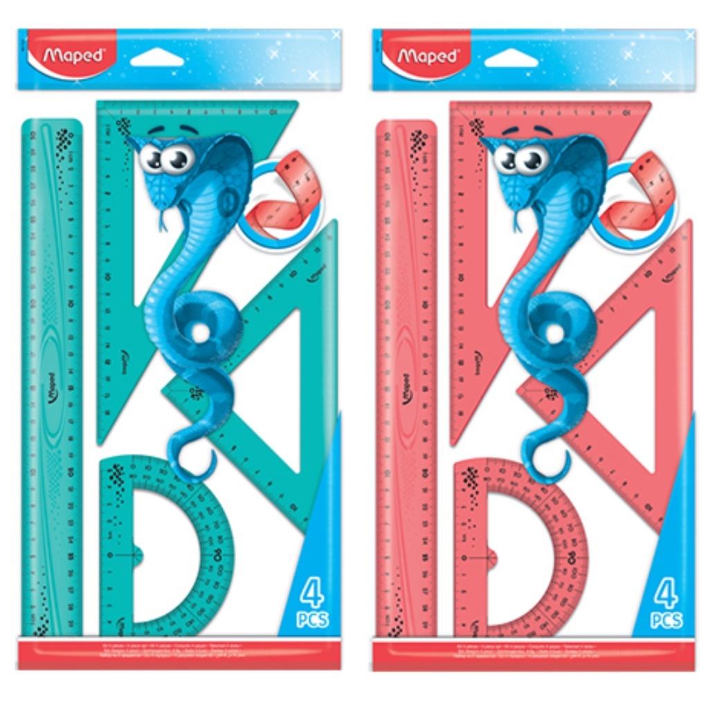 Zestaw Twist'n Flex Pulse Maxi - giętkie, niełamliwe linijki. Na linijce skala dwustronna. Dostępne w dwóch kolorach: różowym i niebieskim. Zawartość: linijka 30 cm, ekierka 60 - 15 cm, kątomierz 180.