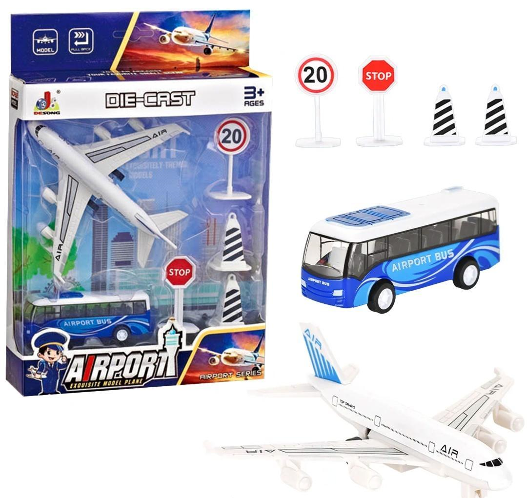 Zestaw Lotniskowy : Samolot, Autobus i Akcesoria - Podniebne Przygody Czekają! Zapraszamy do świata lotniczych przygód z naszym fantastycznym zestawem lotniskowym! Ten kompletny zestaw pozwoli każdemu małemu miłośnikowi lotnictwa stworzyć własne, realistyczne scenariusze na płycie lotniska, rozwijając wyobraźnię i pasję do podróży. Co zawiera nasz zestaw i dlaczego jest wyjątkowy? Realistyczny Samolot : Główną atrakcją zestawu jest szczegółowo wykonany model samolotu pasażerskiego w kolorze białym z niebieskimi akcentami, sygnowany "AIR". Wykonany częściowo z metalu , jest solidny i odporny na dziecięce zabawy, co zapewnia długie godziny lotów. Autobus Lotniskowy: Nieodłącznym elementem każdego lotniska jest autobus! W zestawie znajdziesz niebiesko-biały autobus lotniskowy z napisem "AIRPORT BUS", który umożliwi przewożenie pasażerów z terminala na płytę i z powrotem. Akcesoria Lotniskowe: Aby zabawa była jeszcze bardziej realistyczna, dołączono elementy infrastruktury lotniskowej: o Znaki drogowe: "STOP" i ograniczenie prędkości "20" (MPH/KM/H). o Pachołki drogowe: Dwa w czarno-białe pasy, idealne do wyznaczania stref ruchu lub parkingów. Te detale pozwalają na stworzenie prawdziwego, funkcjonującego mini-lotniska. Rozwija Wyobraźnię i Kreatywność: Zestaw inspiruje do odgrywania ról, tworzenia własnych historii o podróżach, lotach i pracy na lotnisku. Dziecko może być pilotem, kontrolerem lotów, kierowcą autobusu czy obsługą naziemną. Wspiera Rozwój Manualny: Manipulowanie pojazdami i akcesoriami rozwija precyzję ruchów, koordynację ręka-oko oraz zdolności manualne. Idealny na Prezent: To doskonały prezent dla każdego małego fana samolotów, pojazdów i podróży, idealny na urodziny, święta czy inne okazje. Opakowanie z okienkiem pięknie eksponuje zawartość. Wielkość opakowania : 18x22x5 Wiek: Odpowiedni dla dzieci w wieku 3 lata+ (zgodnie z opakowaniem). Rozpocznij swoją lotniczą przygodę! Pozwól swojemu dziecku wzbić się w powietrze z tym wspaniałym zestawem lotniskowym. To gwarancja fascynującej, edukacyjnej i kreatywnej zabawy! W zestawie: 1x Samolot pasażerski Die-Cast 1x Autobus lotniskowy 2x Znaki drogowe 2x Pachołki drogowe Przygotuj pas startowy! Zamów zestaw lotniskowy już dziś i wyrusz w podróż do krainy wyobraźni!