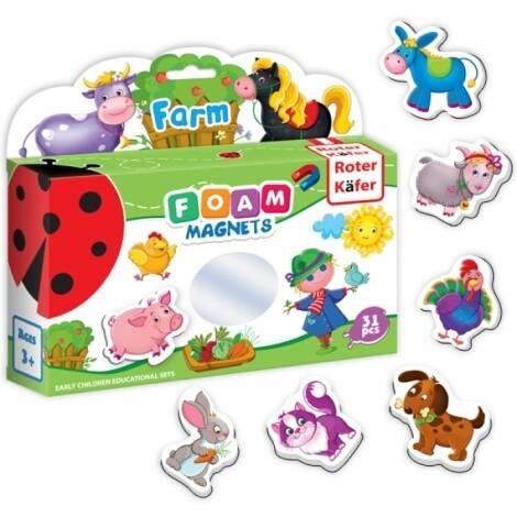 Każdy element zestawu to magnes z wyjątkową ilustracją, która przedstawia zwierzęta i przedmioty związane z życiem na farmie. Jest to idealny zestaw dla małych dzieci.