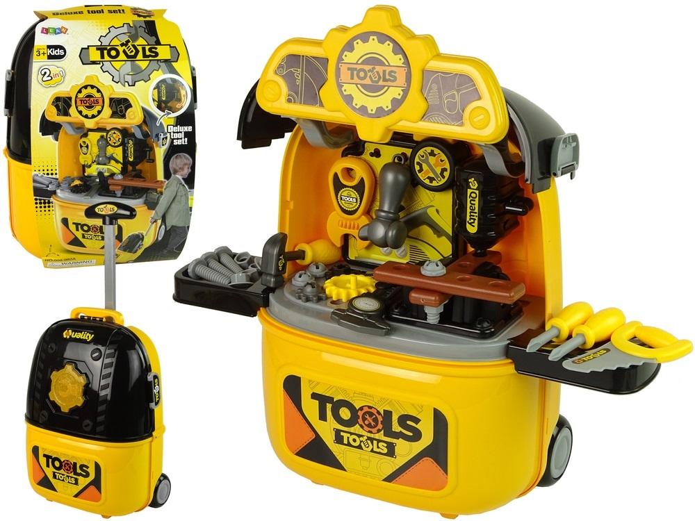 Mały warsztat dla majsterkowicza w walizeczce na kółkach to idealne rozwiązanie na długie godziny. Maluch zabierze wszystkie potrzebne narzędzia w każde miejsce , może będzie to idealne rozwiązanie na wyjazd wakacyjny do dziadka. Zachęci go to do wspólnego spędzania czasu ze starszymi, wspólnie majsterkując i ucząc się nowych umiejętności. Każdy mały majsterkowicz powinien mieć takie narzędzia aby zostać pomocnikiem taty, dziadka i w razie awarii szybko usunąć usterkę.