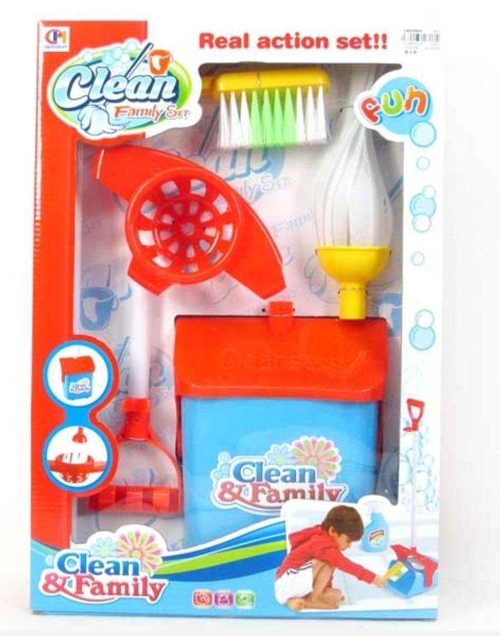Zestaw dla małej sprzątaczki. Zawiera mop, szczotkę oraz kosz.