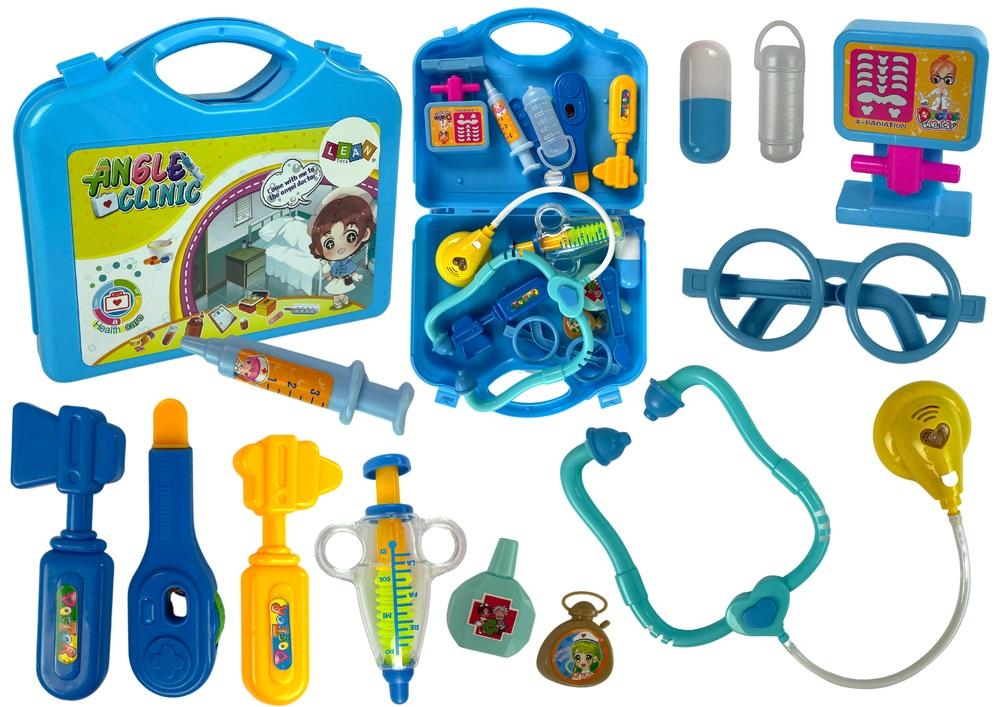 Zestaw Małego Lekarza Walizka Niebieski Stetoskop Zabawa w lekarza jest świetnym sposobem zarówno na to, by dziecko poprzez zabawę mogło opanować podstawowe elementy pomocy, jak i rewelacyjną metodą wyzbycia się lęku przed wizytami u lekarza. Jesteśmy pewni, że sprawi on mnóstwo radości każdemu maluchowi, który będzie mógł leczyć swoich podopiecznych w domowym ośrodku zdrowia. Zabawa pobudzi wyobraźnię dziecka i pozwoli mu połączyć fantastyczną zabawę z nauką i rozwojem własnych pasji. Przedstawione narzędzia medyczne są doskonałym odwzorowaniem i imitacją prawdziwych przyrządów, którym nadano lekkie, opływowe, przyjazne dla dzieci kształty. Doskonałe dla małych rączek. Wszystkie elementy wykonane z plastiku, bezpieczne dla dziecka. Narzędzia znajdują się w przepięknej różowej walizce, którą może zabrać wszędzie ze sobą. Może czas osłuchać pacjenta? Po przyłożeniu stetoskopu serduszko pośrodku zaświeca się na czerwony kolor, sygnalizując badanie. Po skończonym badaniu potrzebny jest zastrzyk oraz leki. Domowy pacjent przy takiej opiece będzie zdrów. W skład zestawu wchodzi: - dwie strzykawki - młoteczek chirurgiczny - RTG - termometr - duży pojemnik w kształcie tabletki -pojemniczki z lekami - stetoskop z serduszkiem - okulary - nożyk - lusterko Wymiary rozłożonej walizeczki: 39 cm x 22 cm x 3 cm Wymiary opakowania: 20 cm x 22 cm x 6 cm Zestaw lekarza wyprodukowany jest zgodnie z normą EN 71, oznaczono go również certyfikatem CE. Stetoskop zasilany jest dwoma LR1130, w zestawie. Wszystkie elementy wchodzące w skład zestawu zostały wykonane z dbałością o najmniejszy szczegół z najwyższej jakości tworzywa, co jest gwarancją zarówno bezpieczeństwa, jak i komfortu użytkowania. Zestaw przeznaczony jest dla wszystkich małych lekarzy powyżej 3. roku życia.